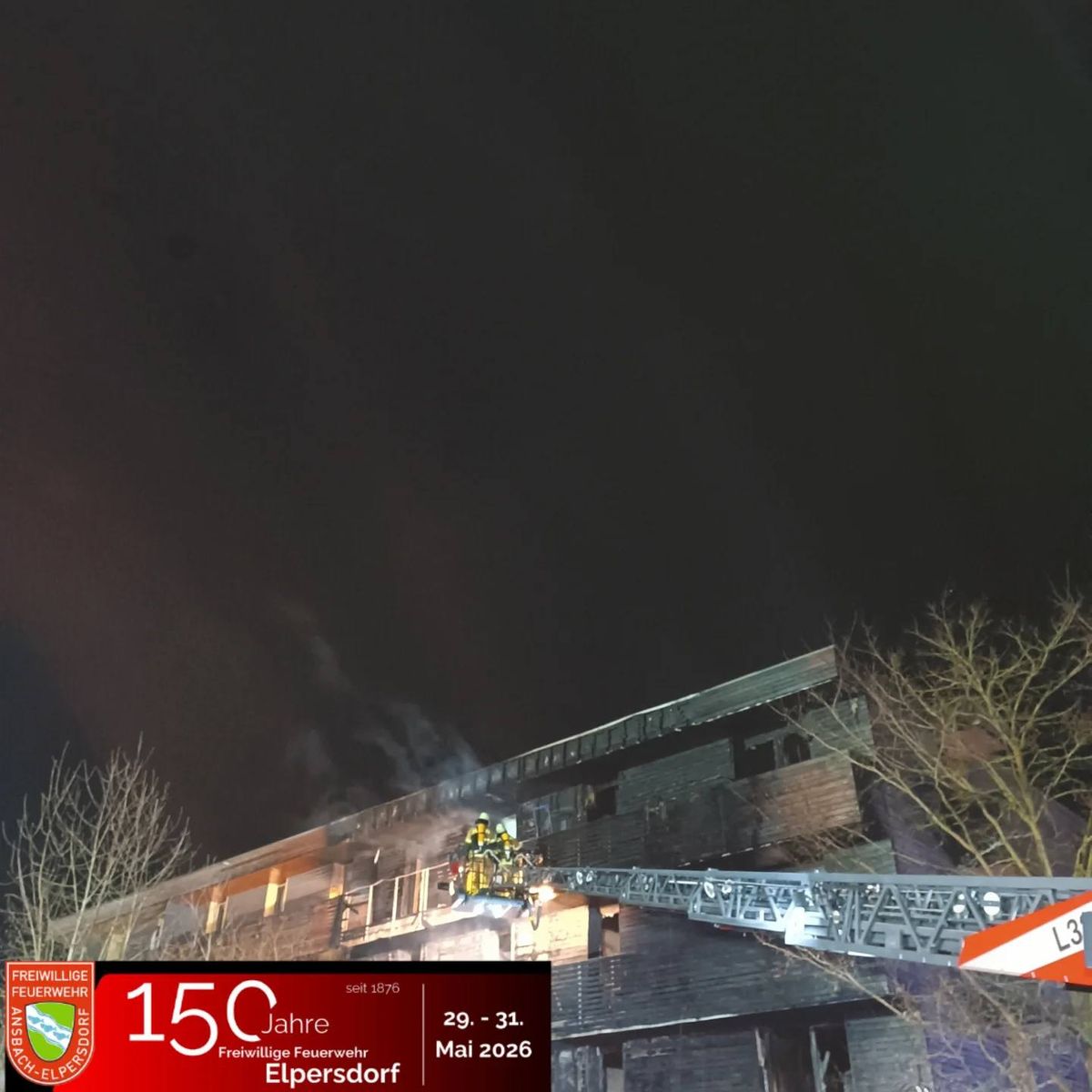 Beschreibung Am 30.4.2025 wurden wir zur einem Brand Industriegebäude nach Schalkhausen alarmiert, dort unterstützten wir die Feuerwehr Schalkhausen beim Löschen. Glückicherweise hat sich das Feuer auf die Absauganlage beschränkt, sodass wir doch noch unser gewohntes Maifest feiern konnten. Dieses Jahr gab es eine Überraschung, und zwar die Enthüllung unseres SAFE THE DATE Plakat für unser Fest nächstes Jahr im Mai.