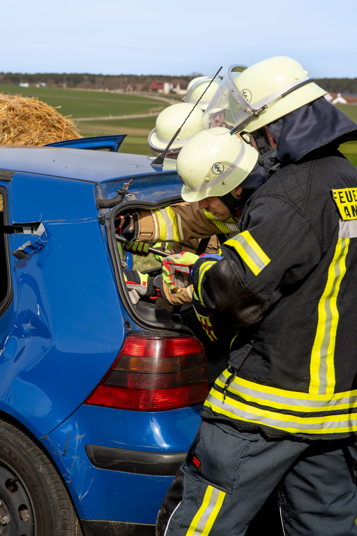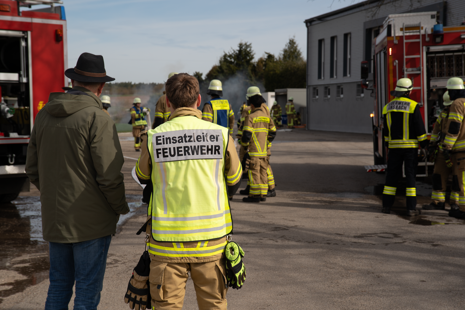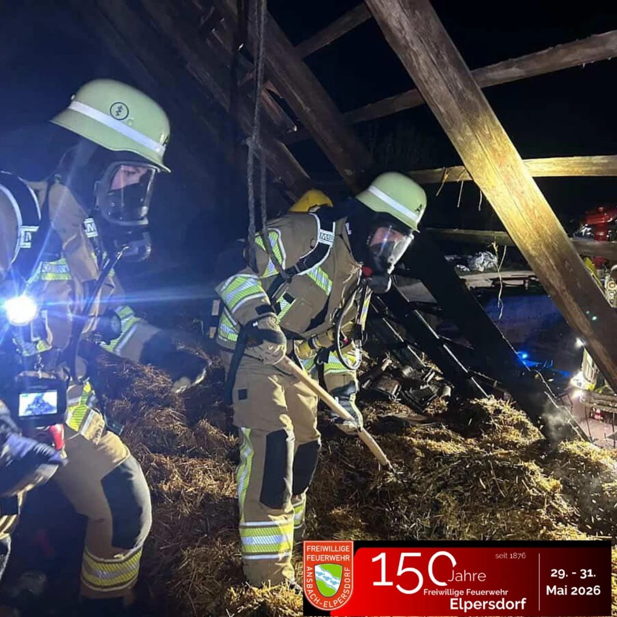 Beschreibung Am 28.03.2026 fand eine groß angelegte Übung mit mehreren Feuerwehren statt. Ziel war es, verschiedene Einsatzszenarien realitätsnah zu trainieren und die Zusammenarbeit zu stärken. Zudem war unsere Jubiläumsübung. Folgende Szenarien wurden dargestellt: Brand im Untergeschoss eines Sportheims Angenommen wurde ein stark verraucht/verbranntes Untergeschoss, in dem sich insgesamt acht vermisste Personen befanden. Diese konnten durch die eingesetzten Atemschutztrupps zügig lokalisiert und erfolgreich gerettet werden. Technische Hilfeleistung: Parallel dazu wurde eine THL-Lage abgearbeitet. Ein verunfalltes Fahrzeug mit einer eingeklemmten Person erforderte eine schnelle und koordinierte Rettung. Auch diese Aufgabe wurde erfolgreich gemeistert. Flächen-/Kleinbrand: Zusätzlich wurde ein brennender Strohballen simuliert. Dieser wurde auseinandergezogen und vollständig abgelöscht, um ein Wiederaufflammen zu verhindern. Wasserversorgung: Die Wasserversorgung wurde gemeinsam durch die Wasserförderungskomponente der Stadt Ansbach hergestellt Zusammenarbeit mit dem Rettungsdienst: Die geretteten und verletzten Personen wurden im Anschluss an das BRK Ansbach übergeben, das uns bei der Übung tatkräftig unterstützt hat. Vielen Dank für die super Zusammenarbeit! Gemeinsamer Abschluss: Nach der erfolgreichen Übung ließen alle Beteiligten die Übung bei einem gemeinsamen Essen gemütlich ausklingen. Ein großes Dankeschön an alle beteiligten Kräfte für die hervorragende Zusammenarbeit! Beteiligte Feuerwehren: Elpersdorf, Bernhardswinden, Schalkhausen, Ansbach, Brodswinden, Claffheim und Winterschneidbach und das BRK